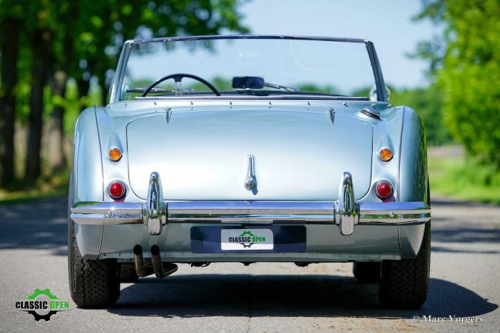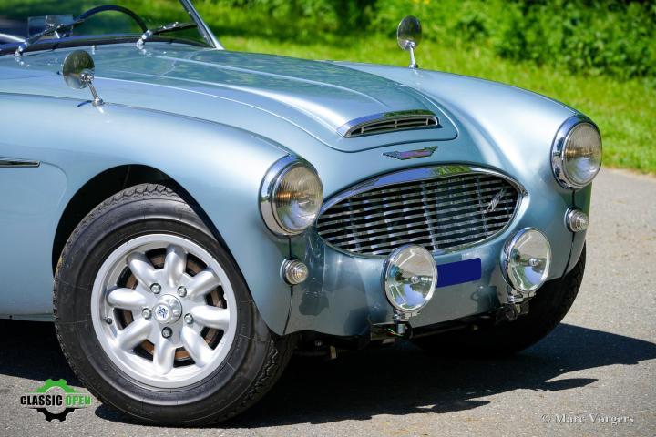 Om de auto een sportievere uitstraling te geven, werd de voorbumper verwijderd. Aan de voorzijde werden extra Lucas SLR700 “flame Thrower”-vérstralers geplaatst en de originele wielen werden vervangen door fraaie robuuste MiniLite-lichtmetalen velgen met Michelin XVS-banden. Dit is een prachtige en subliem rijdende klassieke Austin Healey.