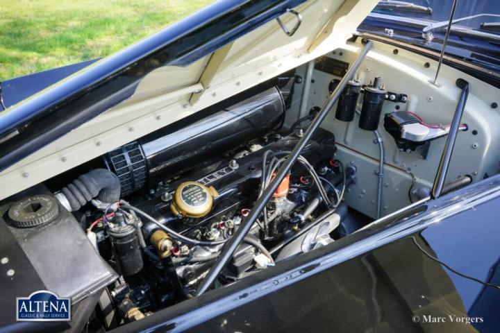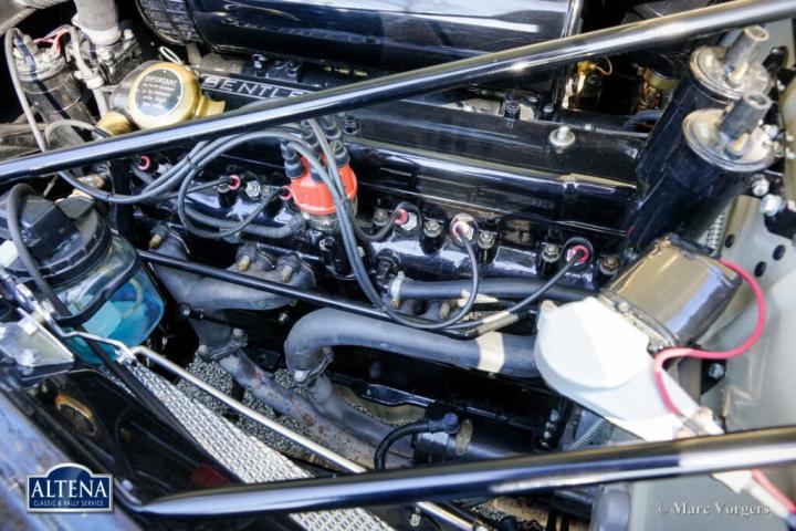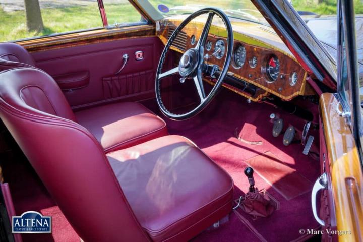 Bentley R Type Continental ‘by Racing Green Engineering’, bouwjaar chassis 1953. Chassisnummer: B40UM, motornummer: B123U, carrosserienummer 00052. Kleur zwart gecombineerd met een bordeauxrood lederen interieur afgewerkt met donkerrood wollen tapijt. Deze majestueuze Bentley R Type Continental werd voltooid door Racing Green Engineering (Wales, VK) in 2015. Deze speciale Bentley R Type Continental is gebaseerd op een Bentley R-type chassis en de mechanische componenten hiervan uit 1953. Het chassis, de motor, de versnellingsbak en alle andere originele componenten zijn volledig gerestaureerd en gereviseerd volgens de hoogste normen en tot in de perfectie afgewerkt. De aluminium carrosserie is met de hand vervaardigd door de vakmensen van Racing Green Engineering naar het voorbeeld van de originele vorm van het R Type Continental ontwerp van H.J. Mulliner. De originele R Type Continental werd gepresenteerd in 1952 en geproduceerd tot 1955. Slechts 208 exemplaren zijn oorspronkelijk gebouwd door Bentley. De R Type Continental herdefinieerde de naoorlogse Bentley en is een van de meest indrukwekkende auto’s ooit ontworpen. De Continental werd gebouwd met een strikt streefgewicht van 1750 kg: in 1950 bestond er geen band die een groter gewicht bij 185 km/u of meer kon dragen. De R Type Continental werd zeer geprezen door Autocar Magazine: “Welke memorabele auto-ervaringen men ook heeft gehad, dit was iets anders… deze Bentley is een modern vliegend tapijt dat grote afstanden overbrugt en de inzittenden bijna net zo fris aflevert als toen ze vertrokken.” Deze Bentley R Type Continental, naar perfectie gebouwd door Racing Green Engineering, heeft sinds zijn voltooiing slechts 2329 kilometer gereden. De auto verkeert nog steeds in als nieuwe concoursstaat! De 4566 cc R Type zescilindermotor loopt soepel en krachtig, en de volledig gesynchroniseerde R Type vierversnellingsbak schakelt perfect. Het interieur is bekleed en afgewerkt met het fijnste leer, wol en walnotenhout. Het houten dashboard en de andere van hout vervaardigde interieurdetails zijn ware kunstwerken. Deze auto heeft sinds de voltooiing één eigenaar gekend. Dit is uw kans om een ​​fantastische replica te kopen van de meest gewilde vintage Bentley uit de naoorlogse periode. Deze exclusieve auto wordt geleverd met originele Bentley-documenten en een restauratierapport.