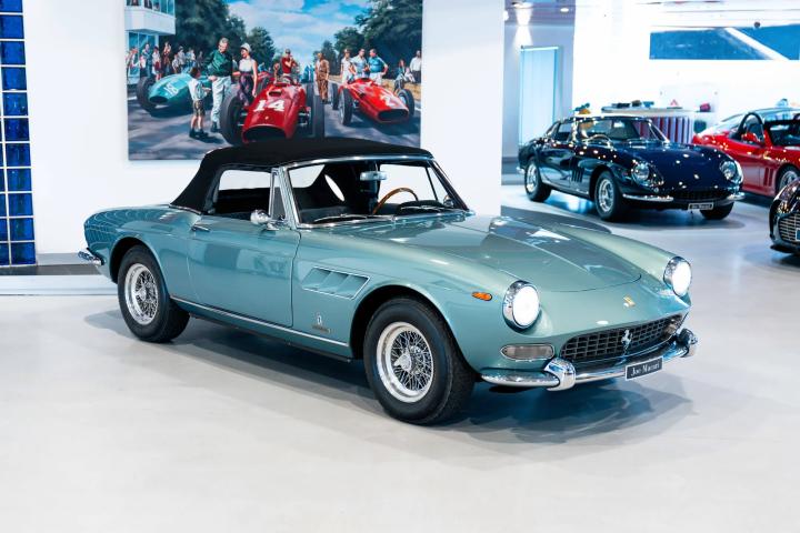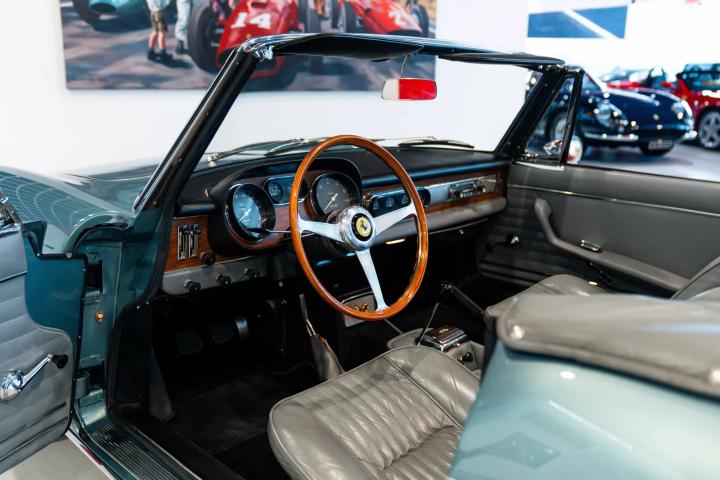 It sits today in beautiful condition and retains its factory correct colour combination of Blu Celeste over Grigio leather. The car has been awarded red book Classiche Certification from the Ferrari factory, confirming its original colour scheme, as well as its matching numbers engine and gearbox. One of only 200 examples built, this stunning 60’s V12 convertible would make a fantastic addition to any Ferrari collection. Contact us now for more information or to arrange a viewing.
