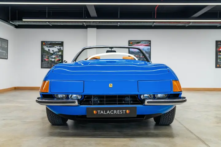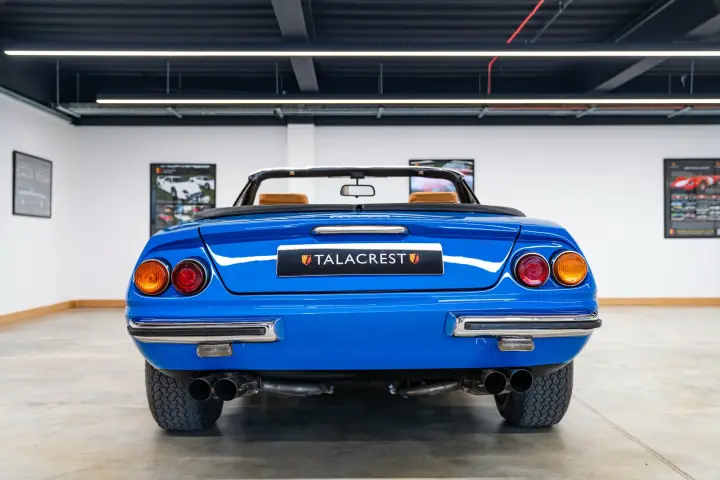 There is extensive documentation making up over 400 pages which documents the correspondence during the conversion and the work was completed in June 2002. During the restoration and conversion, the car was painted in Rosso Corsa coachwork. Towards the end of 2025 Talacrest took the decision to have this incredible example painted in its factory oroginal shade of Azzuro Dino, as such presenting beautifully. An engine service has just been carried out, and in addition work to the braking system including caliper refurbishments has been undertaken.
