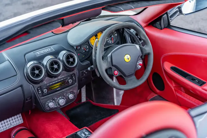 Despite build dates running between 2004 and 2009 for the F430 Coupe and Spider, this stunning low mileage example was supplied by H R Owen London and first registered on 26th July 2012, it therefore displays a '12' UK registration. Included in the sale is the cherished registration FE12 TOY.