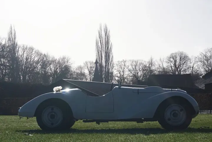 Ancienne Fiat 1500 Barchetta retrouvée dans une grange et remodelée par Touring. La voiture est en état de marche et de conduite mais nécessite une restauration.