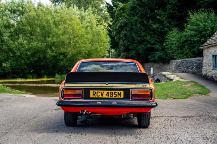 Announced to the press in late 1973, just 250 cars were to be built, all right-hand drive and featuring the distinctive spoiler kit and larger engine to make the Capri competitive in Group 2 once more. Derived from the 3.0 unit found in the Capri 3000GT, the RS3100 featured enlarged cylinder bores giving an overall displacement of 3098cc from 2993cc. Additional Cosworth derived upgrades included hand polished inlet manifolds, cylinder head ports and exhaust ports. Blue cam covers differentiated it from lesser versions. Obviously, there was a myriad of detail upgrades in all areas from suspension to braking.
