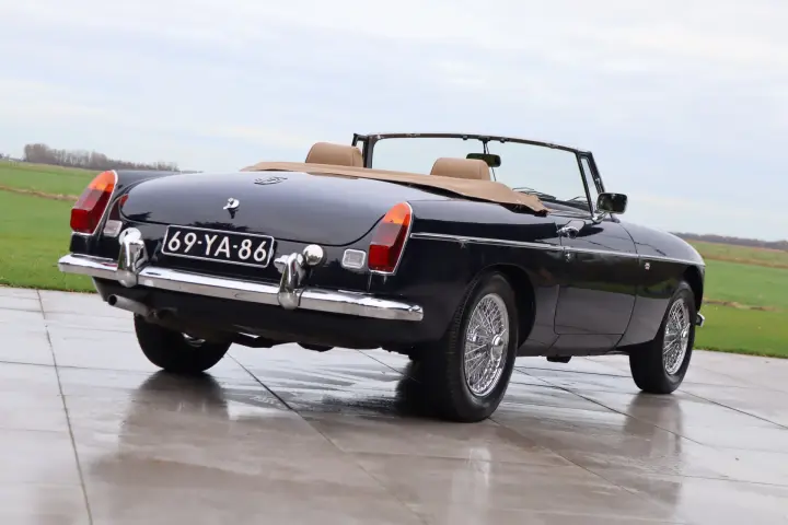 The MG B succeeded the MG A in 1963, a car that was already quite popular for MG - part of The British Motor Company (BMC) - with over 100,000 units sold. The MG B would be produced until 1980, with over half a million units ultimately being produced. In addition to the roadster, other variants were also produced, such as the MG B GT three-door 2+2 coupé (1965-1980), the six-cylinder MG C (1967-1969), and the eight-cylinder MG B GT V8. With its 1.8-litre engine and 95 hp, the MG B was considerably more powerful than the 1.6-litre MG A. In addition to performance and handling, the MG B had to score highly in terms of safety and affordability. This combination made the car a great success. The body is self-supporting and the low centre of gravity and use of aluminium body parts ensure a low weight of 970 kg and a high degree of manoeuvrability. The independent suspension system, in turn, enhances comfort. In short: a great success at the height of the British car industry. An ideal classic for touring, holiday trips or simply to cherish.