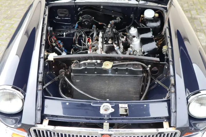 Het motorcompartiment ziet er verzorgd en schoon uit en biedt plaats aan de 1.798 cc 4-cilinder motor, welke is voorzien van 5 maal gelagerde krukas. Hij is verder voorzien van elektrische ontsteking, een oliekoeler en de ophanging voor en achter is vernieuwd. Daarnaast zijn de bladveren aan de achterzijde, het uitlaatsysteem en de koppelingscilinder vernieuwd. Technisch is de MG goed onderhouden en hij start, rijdt en schakelt dan ook uitstekend. Kortom: een schitterend exemplaar van een echte rijdersauto van een iconische auto om een lach op uw gezicht te toveren.