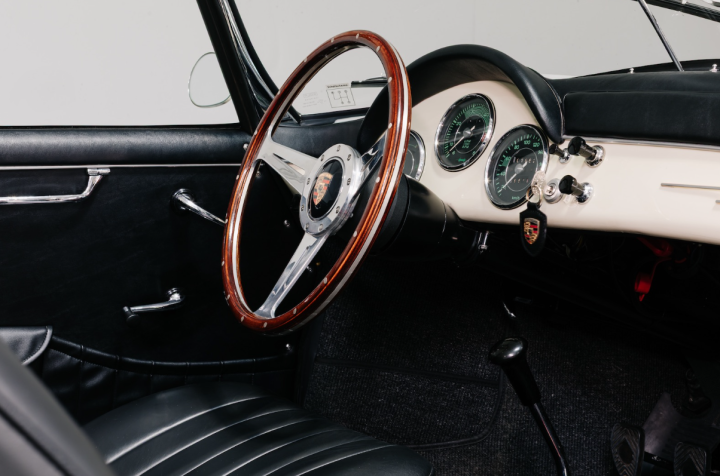The “Super 90” designation marked the introduction of Porsche’s most advanced pushrod engine of the period. Equipped with revised intake manifolds, larger Solex 40 PII-4 carburetors, Carrera-type air filters, 9.0:1 pistons, and a strengthened crankshaft with 55 mm main bearings, it offered a notable increase in both power and reliability. Further enhanced by the adoption of the robust Haussermann clutch, the Super 90 delivered a spirited performance that set it apart from other 356 variants.