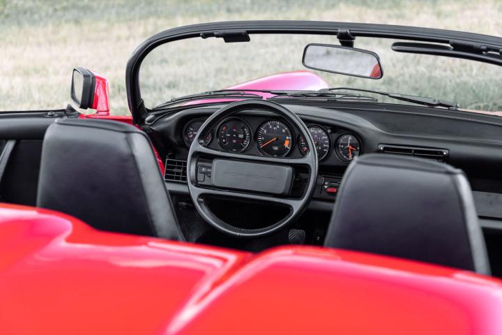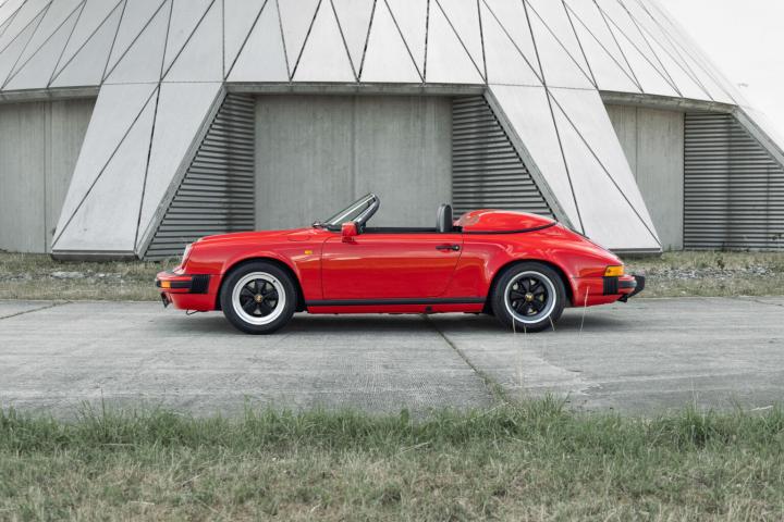 Dies ist einer der 161 jemals gebauten original 911 3,2 Speedster aus 1989 in der schmalen Karosserievariante und der gesuchten Motorisierung mit 231 PS ohne Katalysator.