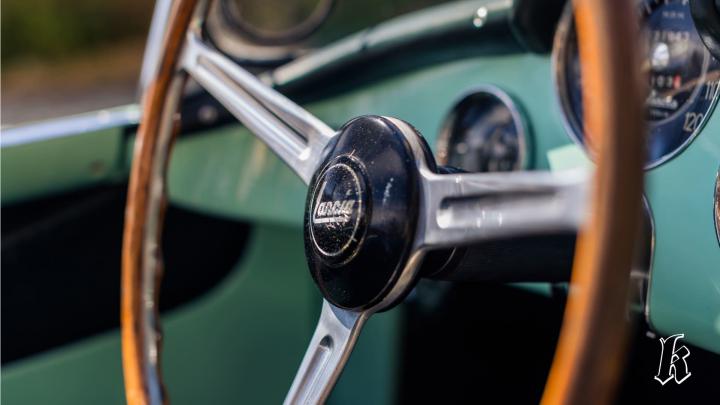 Lancia Aurelia B24S Spider America chassis B24S-1.093 was built in May 1955 and ready for delivery on 30 June 1955. It was finished in what has now become one of the model’s most desirable combinations, striking Verde Chiaro – an Eau de Nile green – with a matching Pelle Verde interior.