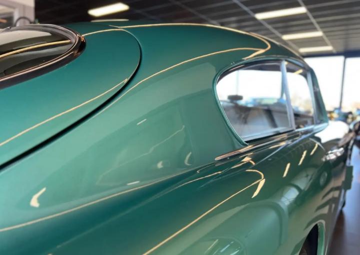 De carrosserie verkeert in mooie conditie met fraai plaatwerk en prachtige passingen. De auto is voorzien van fraai chroomwerk en staat op originele spaakwielen.