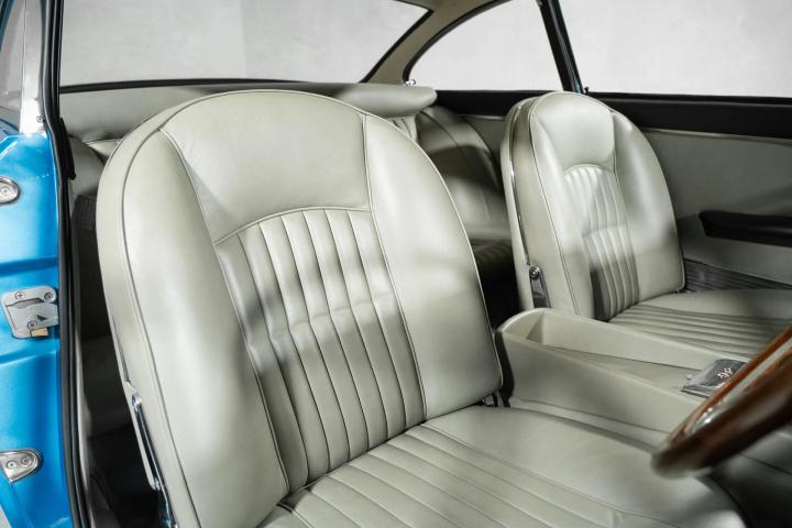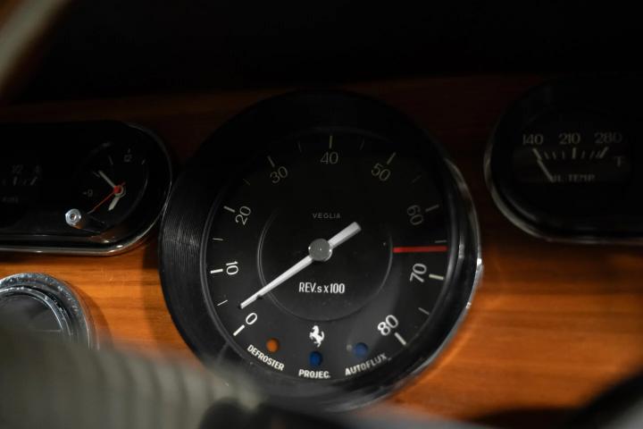 The colour was chosen to match her race cars of the time, and Patsy collected the car (along with five tins of paint) from the Ferrari factory before driving it back from Italy. This is documented in the car’s present and very well-maintained history record which includes an original invoice from 1965. There’s even written communication about the decision for the interior finish – strongarmed by Ferrari into a beautiful Grigio hue.