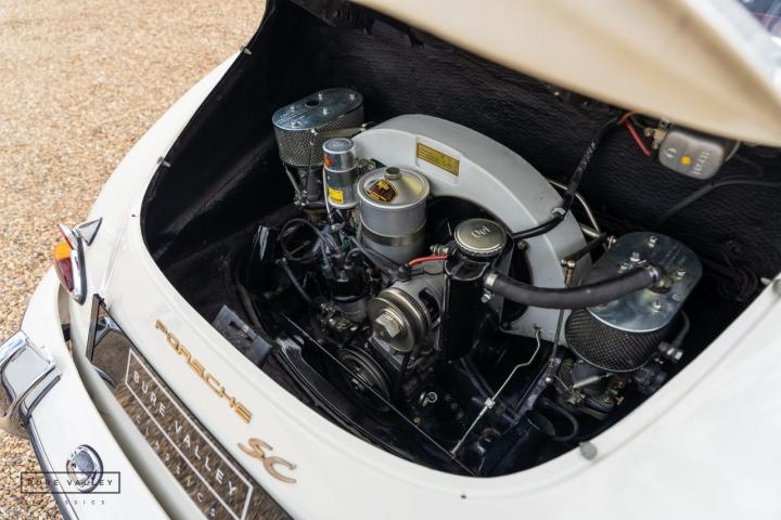 This 1964 Porsche 356C 1600 SC is a superbly restored and mechanically sound example. Presented in its original colour scheme of Light Ivory (6404) over dark red interior and boasting a factory engine and gearbox rebuild by Porsche Classic in Stuttgart. As well as a recent cosmetic restoration including a professional high quality repaint.