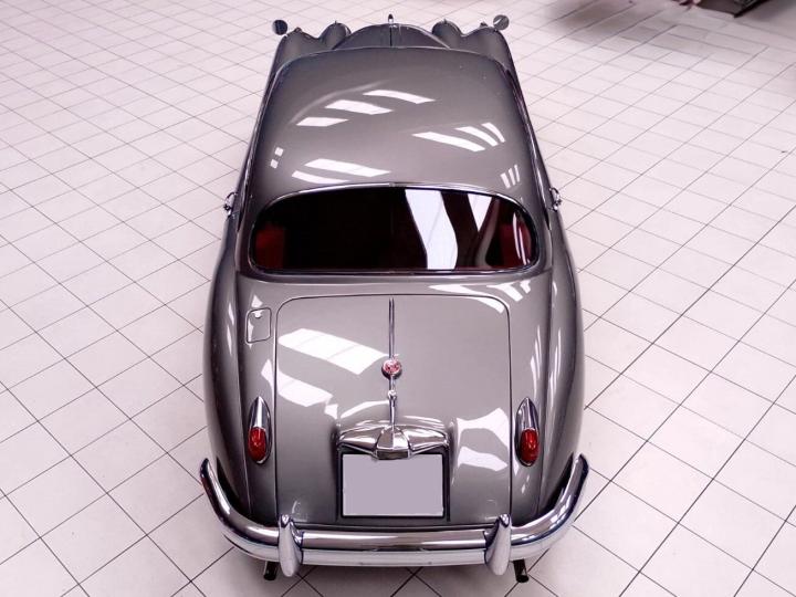 The striking metallic grey exterior paired with Connolly red leather interior gives this car an irresistible visual appeal. As a Fixed Head Coupé, the XK 150 offers greater cabin space and comfort compared to the roadster, while maintaining a sporty and sleek design—ideal for long-distance classic touring.
