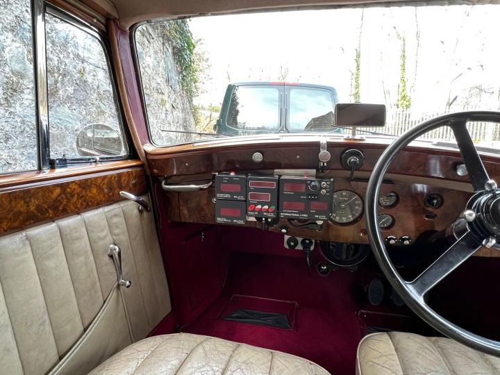 A very fine example of the desirable and sought-after ‘M series’ cars, which has been prepared and maintained at great expense over the period 2016 to 2022. In total, £117,000 has been spent over that time, and as a result the car is running and driving extremely well. It has been used for long distance touring, performing very well indeed and is in ideal condition to continue use of this kind, being mechanically excellent, very sound structurally, and cosmetically at just the right level to use and enjoy, being smart but not so pristine that you are afraid to drive it! The paintwork is generally good, but in places is losing adhesion and cracking. The leather is in good condition, the seats are nice and plump, but the pale colour is fading and looks grubby. Perhaps a gentle colour of an appropriate type would be a good idea. What’s ‘under the skin’ matters most in a car that is to be actively used, and this one really is in that category. The engine is smooth and quiet, with a willing, ‘pulling at the leash’ quality, being very lively. Couple this with the high ratio gearing, and you have a very usable car, ready to enjoy. All the aforementioned work is documented, with invoices and photos, in a file which also includes copies of the old logbook, various other papers and a VSCC eligibility certificate. The ‘time trial’ meters fitted to the dashboard are included with the car, but we would be happy to remove them if preferred without. Serviced & MoT tested. Excellent value for money and ready to go.