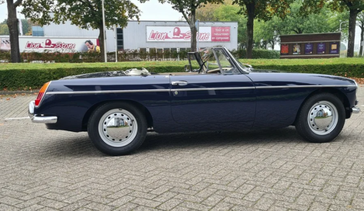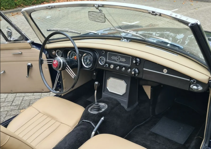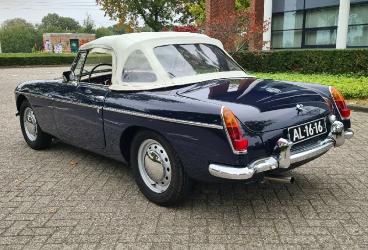 Een zeldzame kans voor de liefhebber! Deze beeldschone MGB uit 1963 schittert in de bijzondere kleur Midnight Blue en behoort tot de vroege modellen met het gewilde “lepeldeur”-type.