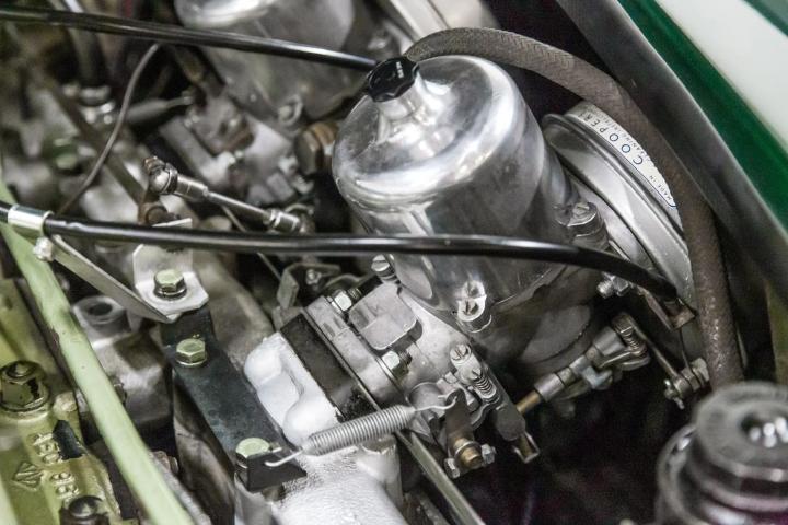 This 1967 Austin-Healey 3000 BJ8 Mk III received an initial refurbishment between 1997-2001, during which time it was repainted in its current British Racing Green finish ( original color). The late Austin-Healey specialist Kent Lambert acquired the car in 2018 with the intention of finishing the restoration and performed additional work between 2019 and 2022, although the project was not completed.