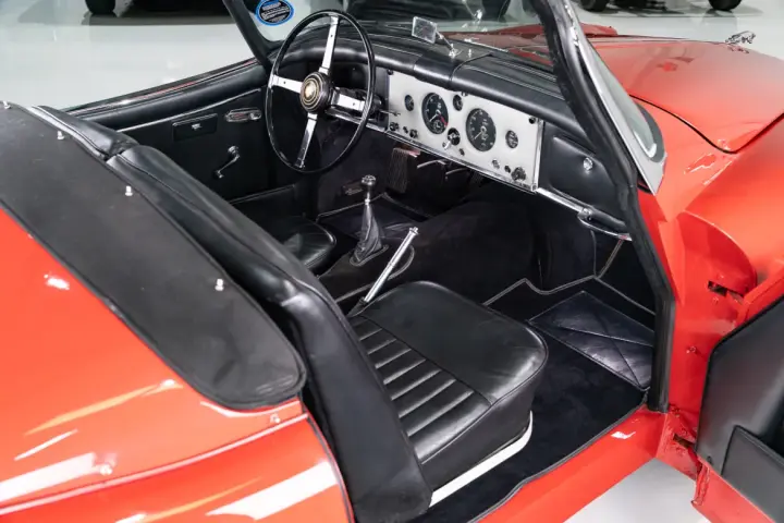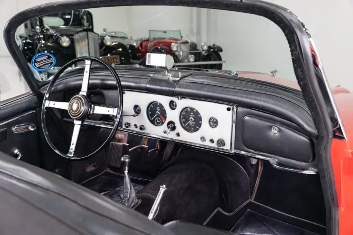 In addition to its accelerative performance, Jaguar took a page out of their motorsport handbook and offered the car with four-wheel disc brakes – making the XK150 the first production car to come so equipped. Finally, three body styles were also offered: coupe, drophead coupe (DHC), or two-seat roadster (OTS). Whereas the DHC was more touring oriented, the OTS roadster’s fully hidden roof and somewhat lighter weight made it the most sporting choice.