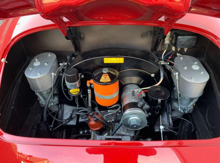 Seltener 356 A Speedster T2, Baujahr 1958, Rubinrot, Kunstleder braun, US Erstauslieferung 21.1.1958 vor 10 Jahren nach Europa importiert vollständig in höchster Qualität restauriert, Motor/Getriebe matching, Motor wurde im Zuge der Überholung verbessert 95 PS, die gesamte Technik wurde überarbeitet, Türen Haube sind matching einmaliger Karosserie Zustand perfekte Spaltmaße, Fahrzeug mit Classic Data Wertgutachten, neue TÜV H-Vollabnahme neuen Service, einmaliger Speedster der in dieser Qualität nur sehr selten zu finden ist.