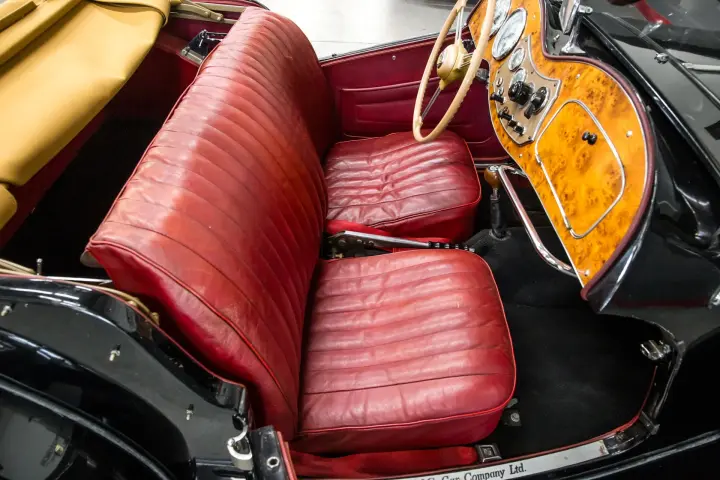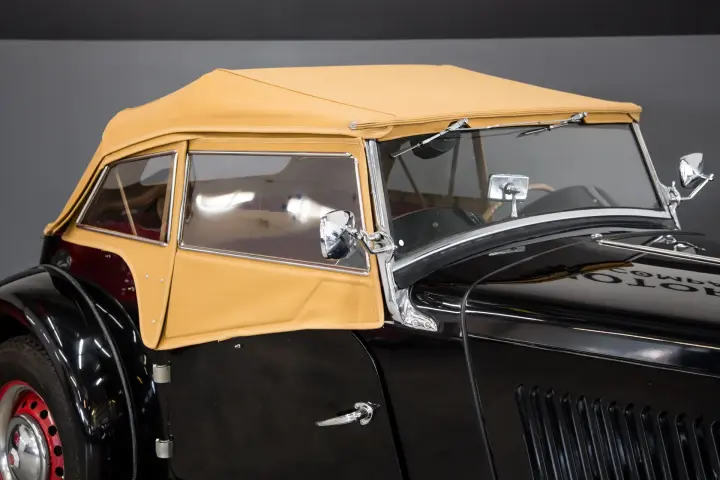 This lovely, unique MGTD is an older restored car that has been kept in climate controlled environment. The car is solid with no rust ,no wood rot, no indication of accident history. The wings are straight, the doors fit snugly, the chrome is nice as is the paint that looks in person as the pictures reflect. The leather is in good order, all gauges are clean and work as designed. Carpets door cards, soft top, weather gear are all in good condition.