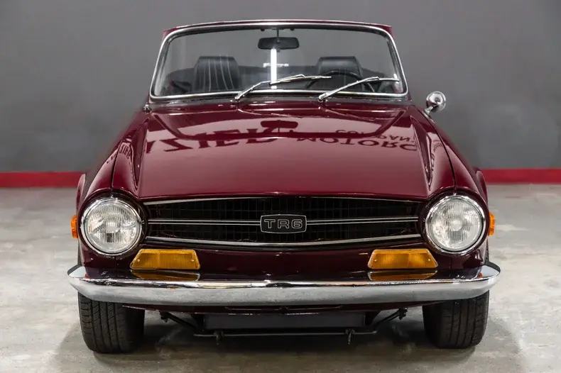 This absolutely gorgeous TR6 was owned by the same California based family for 52 years ! The car is a typical mid California car with absolutely no rust and has never been victim to an automotive accident. The body panel gaps are correct and even. The body panels are straight. The gorgeous cloth soft top sets the car off. The soft cloth top married to the beautiful paint ,brilliant chrome as well as the chrome wheels make for a very attractive combination.
