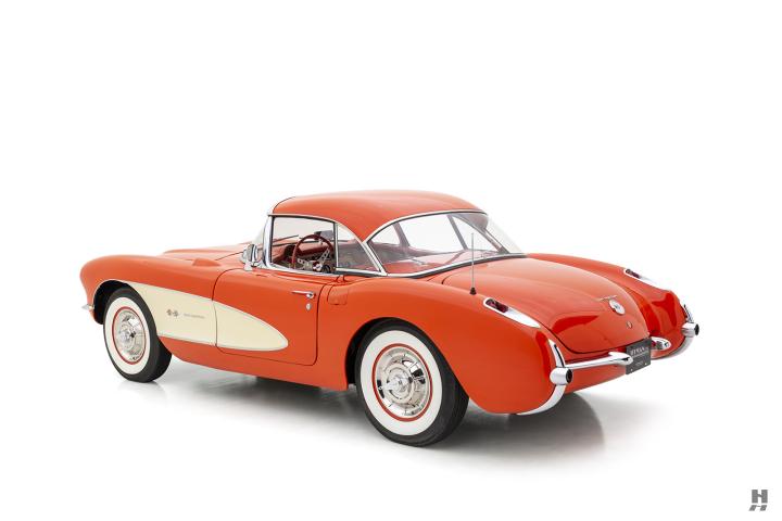 Presented in a particularly attractive color scheme of Venetian Red with contrasting off-white coves, this superb Corvette is offered out of an extensive collection of significant sports cars. Of the 1,040 fuel-injected Corvettes built in 1957, just 713 came in this ultimate street specification, equipped with the 283-horsepower solid-lifter EL-code ‘Fuelie’ 283 backed by a 4-speed manual transmission.