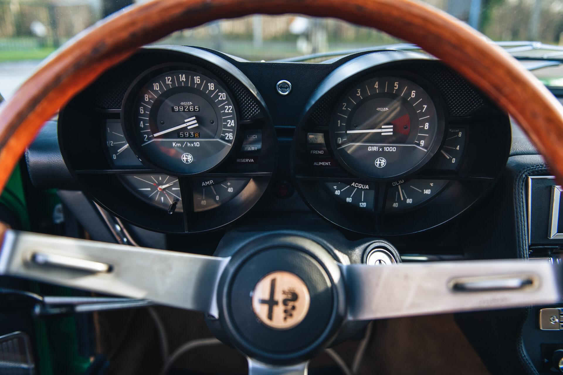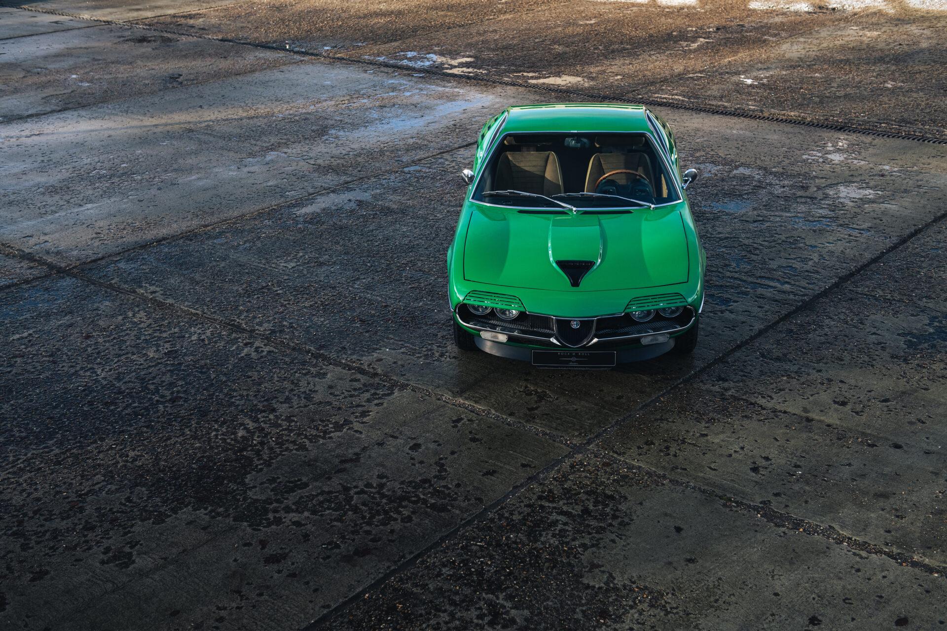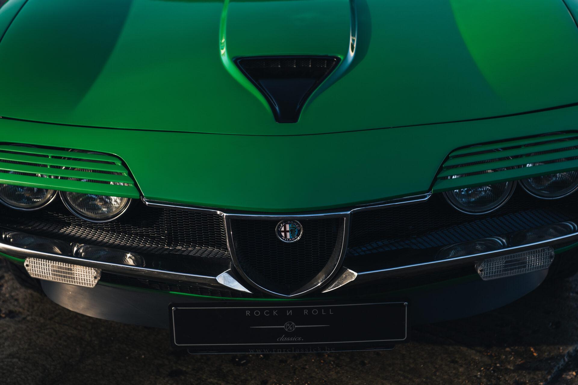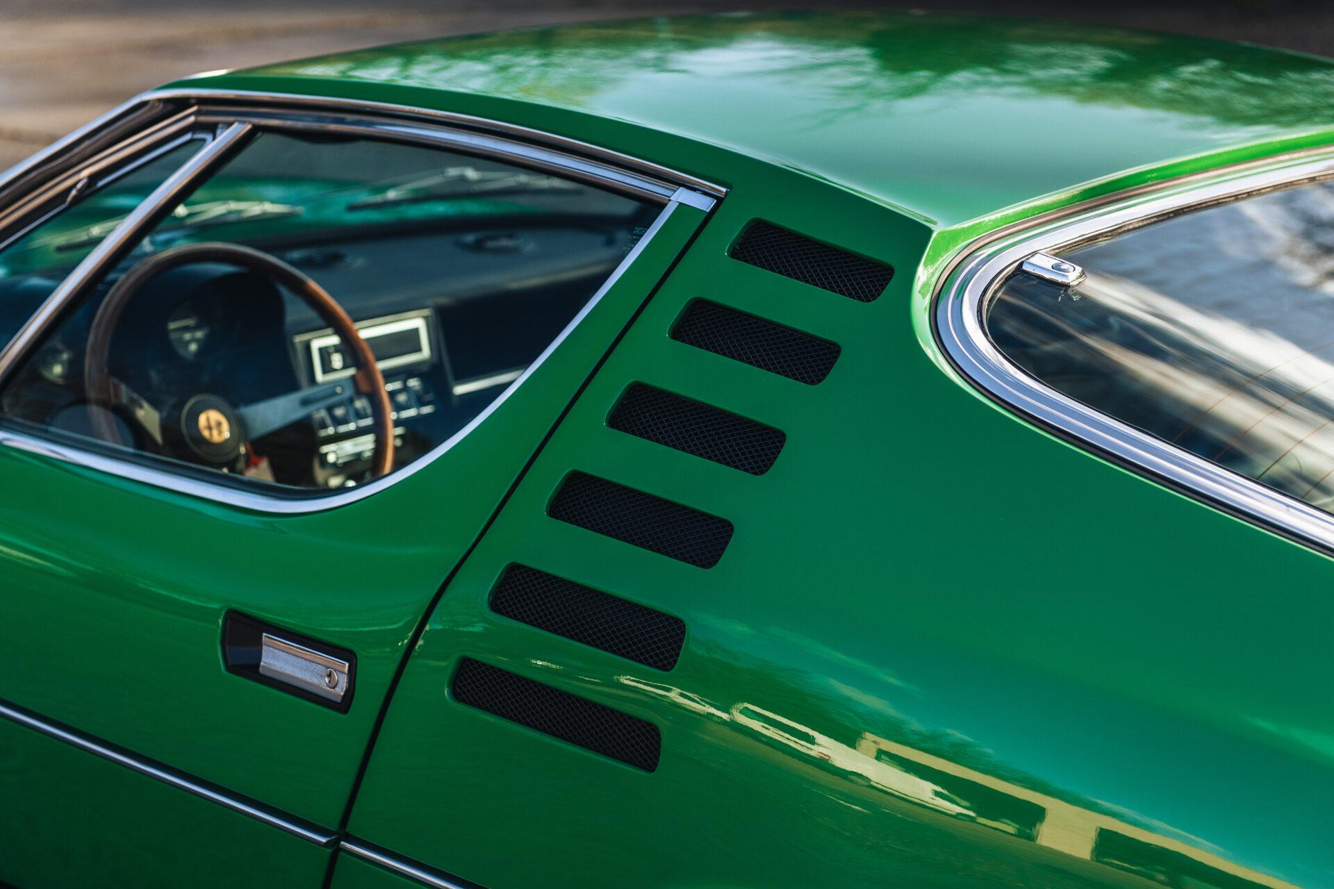 Our 1972 Alfa Romeo Montreal has undergone an extensive nuts and bolts restoration. Every part of the car has been carefully dismantled, inspected, cleaned and repaired or replaced where necessary. The result is a car that is in absolute top condition and looks and drives just as it did when it first rolled off the production line. The Verde Medio body colour has been expertly reapplied according to the rules of art. This has resulted in a beautiful, glossy finish that really shows off the lines and shapes of this iconic Italian sports car. The bright green combines perfectly with the pale interior to create a harmonious whole.