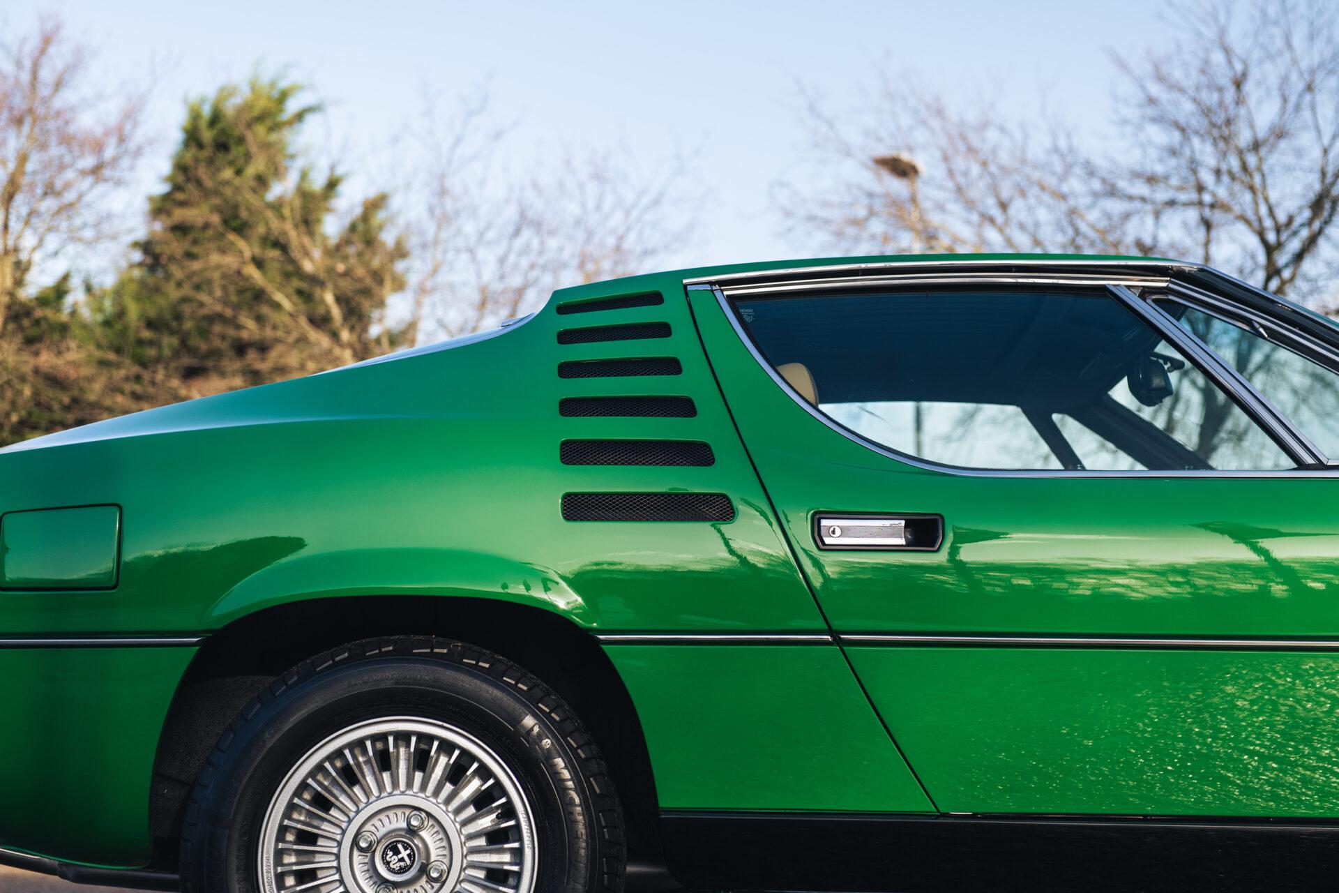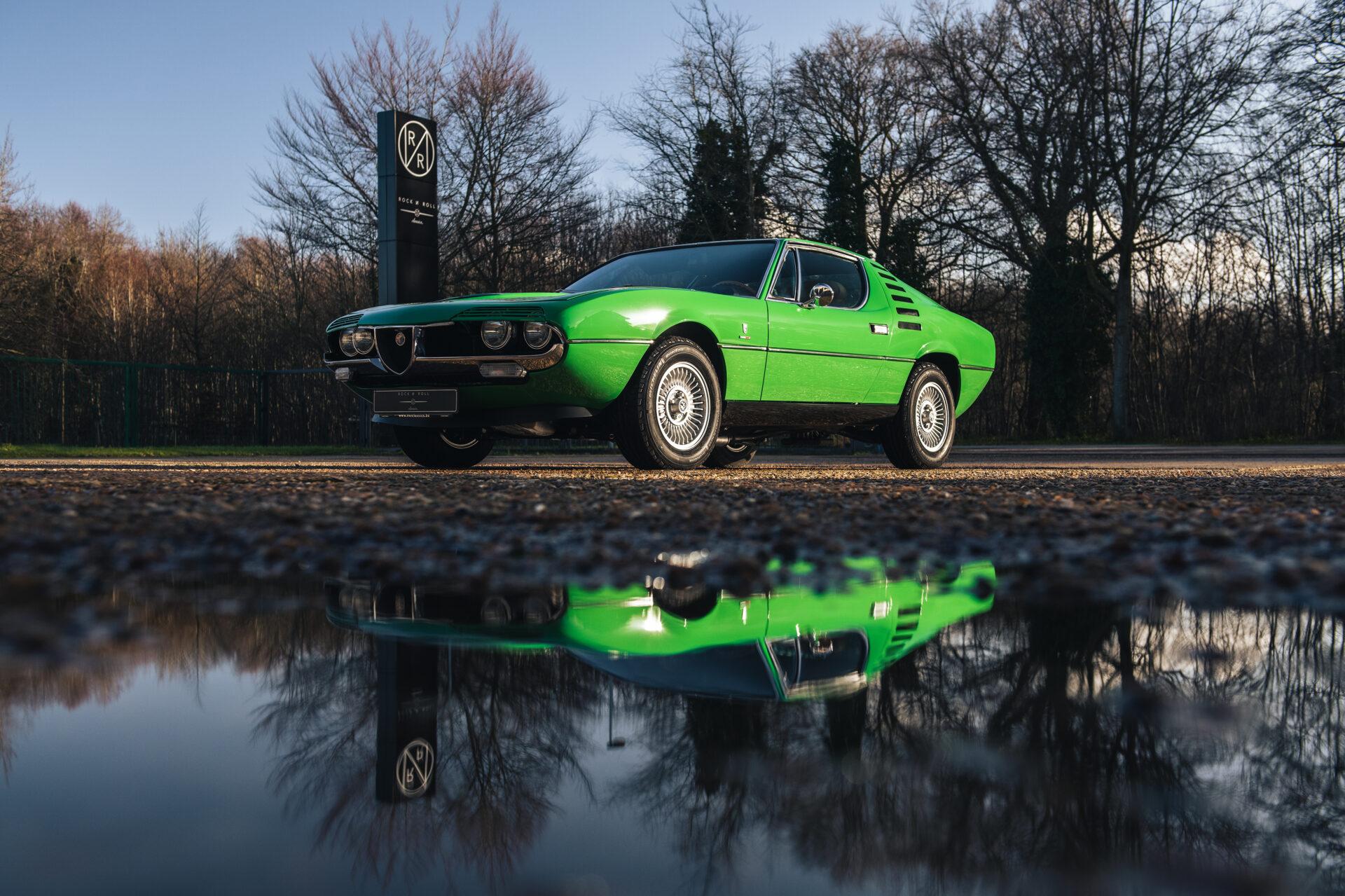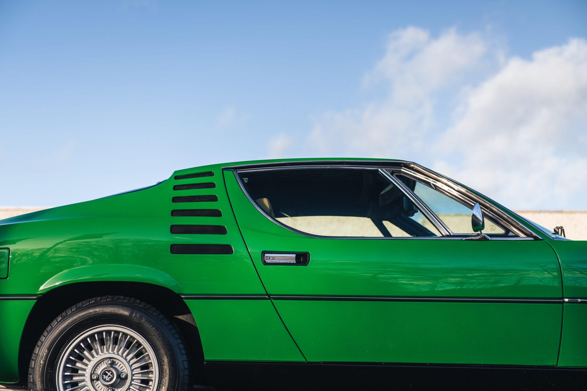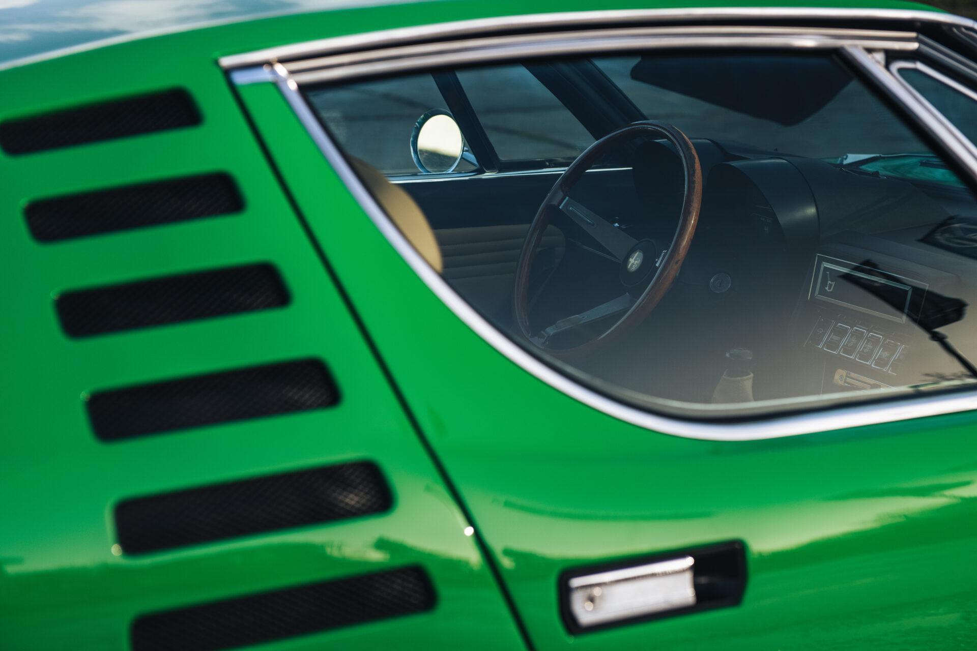Our 1972 Alfa Romeo Montreal has undergone an extensive nuts and bolts restoration. Every part of the car has been carefully dismantled, inspected, cleaned and repaired or replaced where necessary. The result is a car that is in absolute top condition and looks and drives just as it did when it first rolled off the production line. The Verde Medio body colour has been expertly reapplied according to the rules of art. This has resulted in a beautiful, glossy finish that really shows off the lines and shapes of this iconic Italian sports car. The bright green combines perfectly with the pale interior to create a harmonious whole.