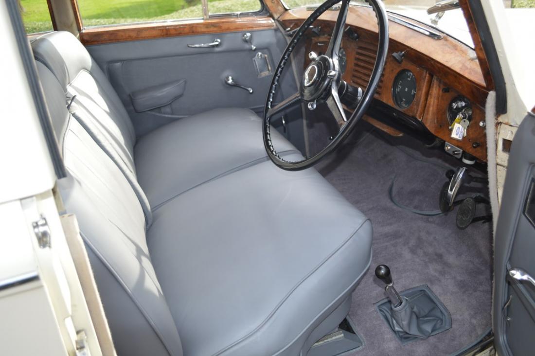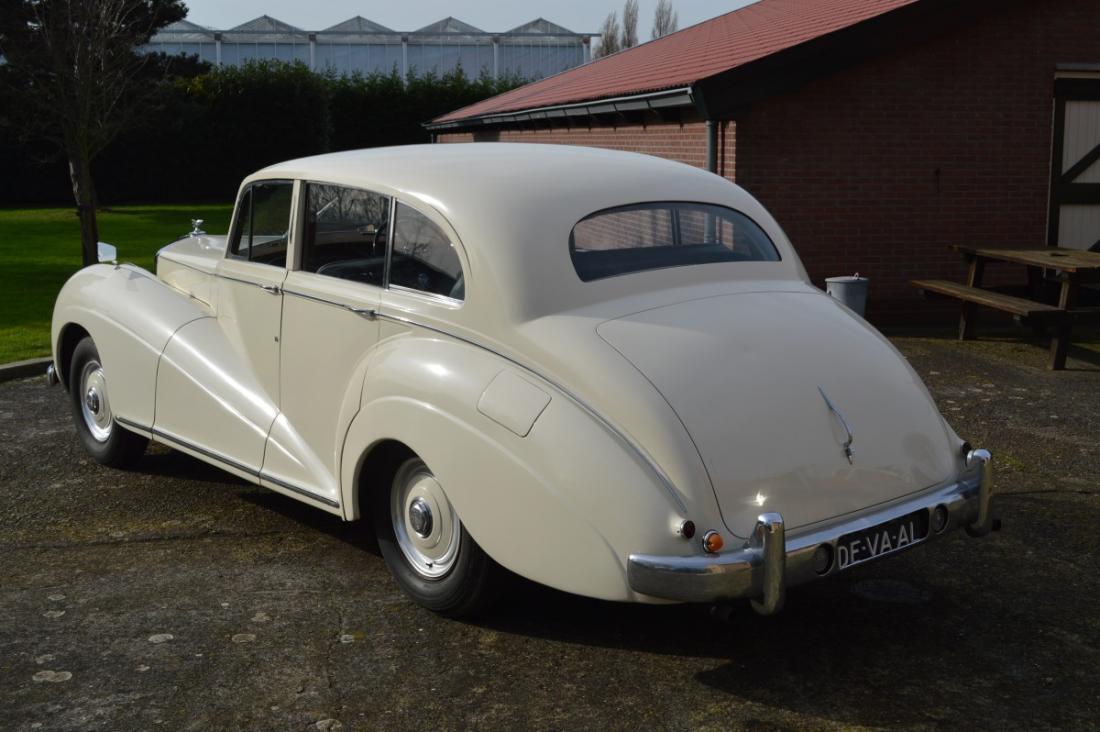 This elegant Bentley Mk VI was provided with a coach by James Young. The production of this model stuck to 35 examples, making it a rare opportunity. This design C12, body number 1977, has the unique characteristic of a 4d6l saloon body. This abbreviation means 4-door, 6-light, refering to 4 passenger doors and 6 side windows. It points out that side windows have been made behind the doors, usually resulting in a very spacious car. This is the only 4d6l design by James Young for a Mk VI.