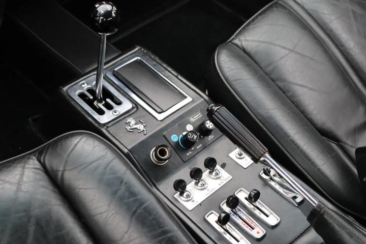 Ook het interieur verkeert in zeer nette staat: vrij van beschadigingen en scheuren. De vloermatten en het hemeltje zijn netjes en het leer is prachtig om te zien en te voelen. Een prettige cockpit met fraaie tellers, en verder voorzien van precies de luxe die niet overbodig is: een Blaupunkt radiospeler, airconditioning en elektrisch bedienbare ramen. Ook de kofferruimte aan de voorzijde is in nette staat. De algehele staat van het interieur doet vermoeden dat de Ferrari over een lage kilometerstand beschikt.