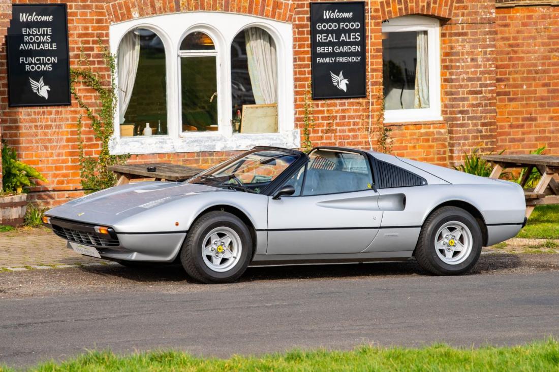 Ferrari 308 GTS chassis no. 24527 is 1 of just 184 examples commissioned for the U.K. right-hand drive market. Delivered new via Ian Anthony Sales LTD in 1978, the GTS was optioned with an Argento Auteil exterior over a luxuriously upholstered Blue interior trim, the same specification it wears today.