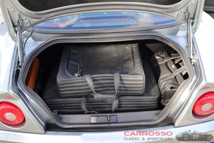 On 8 June 1999, this Ferrari was delivered new by Kroymans in Hilversum to its first owner in Belgium. The car has been maintained at Kroymans throughout its ownership. In 2003, the Ferrari was imported to the Netherlands, where it has been owned by the same owner until recently. In September 2024, major maintenance was carried out by Kroymans including filters, spark plugs, timing belt and valve cover gaskets (invoice over €13,000). The full specification of the service is described on the invoice. The Ferrari is therefore fully roadworthy for its next owner. Thanks to the extensive documentation, the maintenance carried out is clear and the mileage logical. Optically, the 550 is formidable: the well known colour ‘Grigio Titanio’ - which is also available on Ferraris today - and with the famous 5-spoke original alloy wheels. Completing the car are the optional red painted brake calipers, Daytona seats and Schedoni trunk set. Not only do the seats sit superbly, they also look insanely beautiful. So it is not for nothing that these seats are highly coveted and expensive these days. The same goes for the optionally available Schedoni luggage set. This three-piece suitcase set is high-quality and exclusively manufactured. For a trip to, say, Italy, we can't think of a better car: fast, luxurious, comfortable and stylish.
