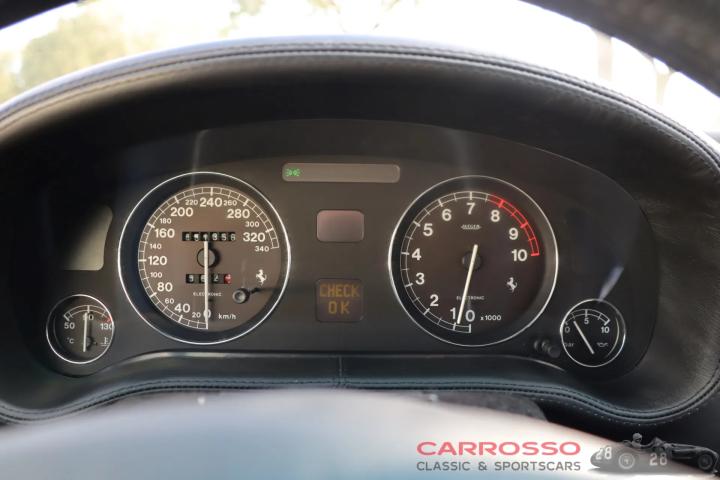 In het originele tan lederen mapje vind je een schat aan authentieke Ferrari documentatie waaronder het ingevulde serviceboekje, de handleiding voor de radio, het Owners Manual handboek, het aflever- en garantieboekje, de alarmhandleiding en zelfs het garantieboekje van het Hi-Fi systeem. Al deze originele en waardevolle boekjes zijn zorgvuldig bewaard. De Ferrari is naast een snelle sportauto een comfortabele lange-afstandsauto en is voorzien van opties als elektrische stoelen, ramen en spiegels, automatische airconditioning en een Becker radio met navigatie. De 'Sport Mode' zorgt ervoor dat de ASR minder actief is en de dempers stijver worden bijgesteld, voor meer gevoel bij sportief rijgedrag.
