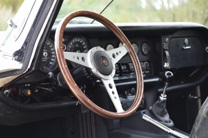 J'ai le plaisir d'offrir à la vente cette Jaguar E Type V12 OTS. Enregistrée pour la première fois en mars 1974, ce qui en fait l'une des dernières produites, la production ayant cessé en juin de la même année. Chassis No : 1S 25471 étant l'une des 63 voitures du marché domestique non taxées livrées par Henly's de Londres et l'une des 2 seules voitures V12 LHD OTS Manual livrées par eux et enregistrées à Coventry le 23 août 1974, portant le numéro d'enregistrement : NWK 213N.