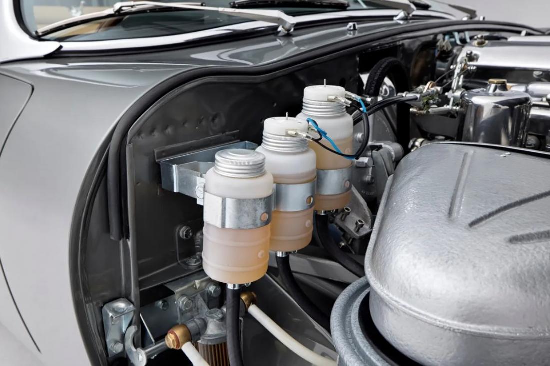 Early cars are distinguished by covered headlamps (as in Aston DB5), horseshoe seats, aluminium dashboard and gearshift tunnel, bellows servo braking system and instrument panel toggle switches.