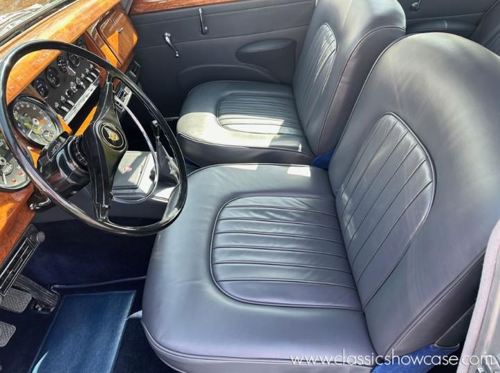 This original California Jaguar has remained in the Western United States and proved to be a great candidate for restoration. Our team began with a full strip-down to bare metal, followed by rotisserie mounting, metal finishing, leading, and precise body and chrome fit. The sedan was then sealed and painted in a striking Metallic Silver finish, complemented by a newly trimmed Dark Blue interior crafted in correct materials by our in-house Master Trimmer.