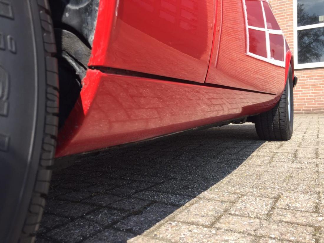 Our signal red XJS still wears its factory original paint (code CFC) on most of the body work. The left rear fender has had a respray, presumably from some light damage, that is no longer visible. All of the factory VIN stickers are on the car, indicating that none of the bodywork has ever been replaced. The paintwork has a perfect finish, with only minor traces of use.