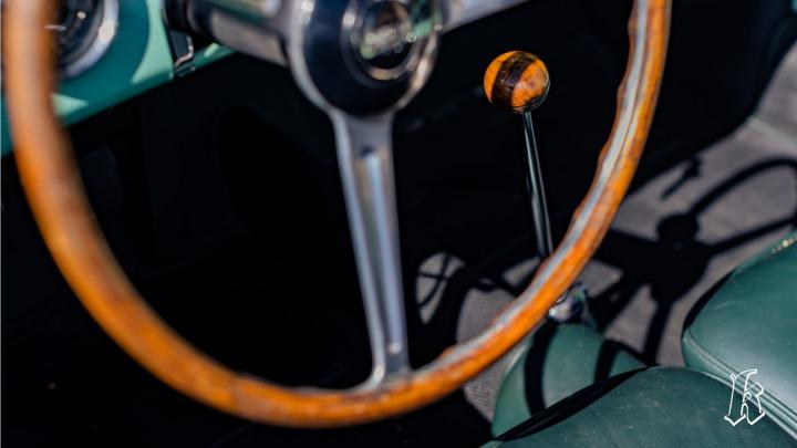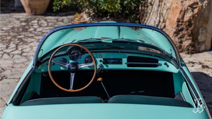 Lancia Aurelia B24S Spider America chassis B24S-1.093 was built in May 1955 and ready for delivery on 30 June 1955. It was finished in what has now become one of the model’s most desirable combinations, striking Verde Chiaro – an Eau de Nile green – with a matching Pelle Verde interior.