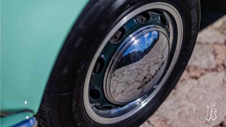 It has always been used regularly and kept in a heated garage in winter. The car runs on bimetallic (steel/aluminium) Borrani wheels purchased from Luciano Basso, the official factory restorer of older Lancias in Turin.