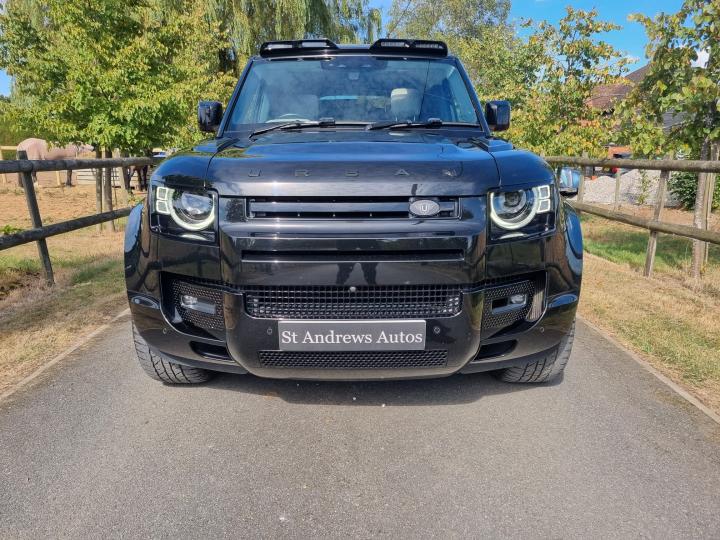 LAND ROVER DEFENDER 3.0 D300 HSE 110 5dr Auto 7 Seat for sale. This 2022 Land Rover Defender 110 D300 HSE is a superb example of this iconic vehicle, boasting a powerful 3.0L Diesel engine and a robust Four Wheel Drive system. As a Euro 6 compliant model, it meets modern emissions standards, and its impressive 3500 kg towing weight makes it exceptionally capable for a variety of tasks. Inside, you’ll find a wealth of premium features designed for comfort and convenience, including Matrix LED Headlights with Signature Daytime Running Lights, 2 Zone Automatic Climate Control, and a Heated Steering Wheel. The 14 Way Heated and Cooled Electric Memory Front Seats offer exceptional adjustability, complemented by a Sliding Panoramic Roof that enhances the spacious cabin feel. Urban body styling, large nav screen, side steps and ivory leather seats. Please get in touch for any further details or to arrange a viewing.
