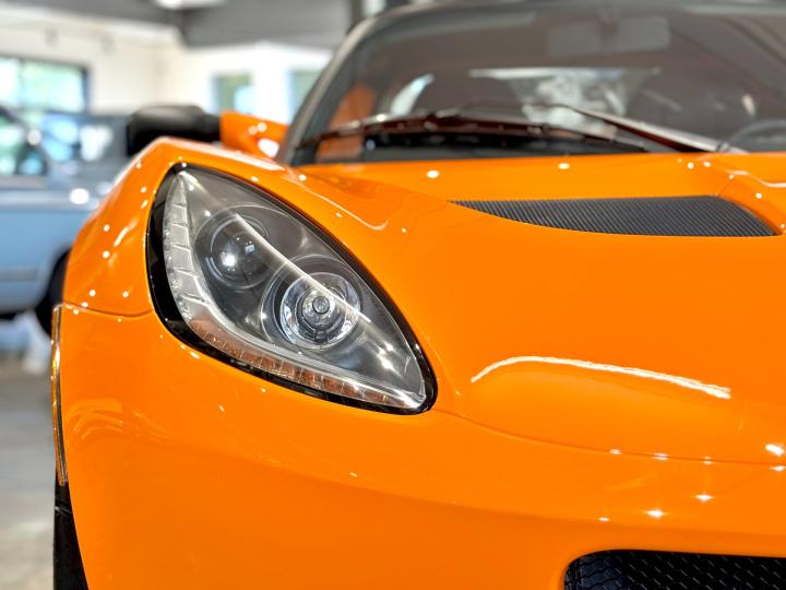 #4 is an impeccably preserved example. It shows approximately 15k miles, and is completely stock with zero modifications or aftermarket additions. It wears it's original Chrome Orange paint, as well as it's original factory delivered Star Shield PPF. The undercarriage and underspoilers are free of scraping and other damage, and the car shows to have never seen winter weather. The Chrome Orange paint presents extremely well and is free of pitting sandblasting or other notable imperfections. The OEM Alcantara Lotus Sport seats show no wear to speak of, and all other Alcantara bits such as the door cards and centre console remain in the same condition. The aluminium floor boards, sills and underdash are free of scratching or other visual damages.