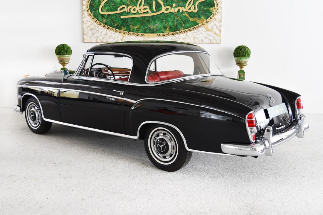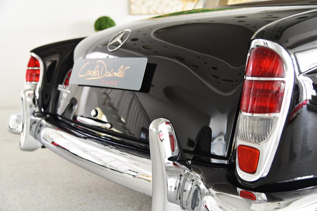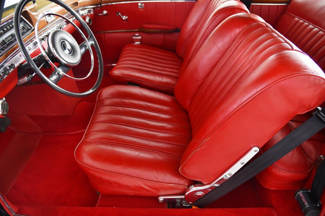 Dieses 220 SE Coupé befindest sich in einem wunderschönen restaurierten Originalzustand. Laut der vorliegenden Datenkarte ist es Matching Numbers und Matching Colors. Es präsentiert sich heute wie bei der Auslieferung im schönen Schwarz (040) mit rotem Leder (1088). Das Fahrzeug wurde am 12.05.1960 als Sonderausführung für die USA mit Sealed-Beam-Scheinwerfern ausgeliefert.