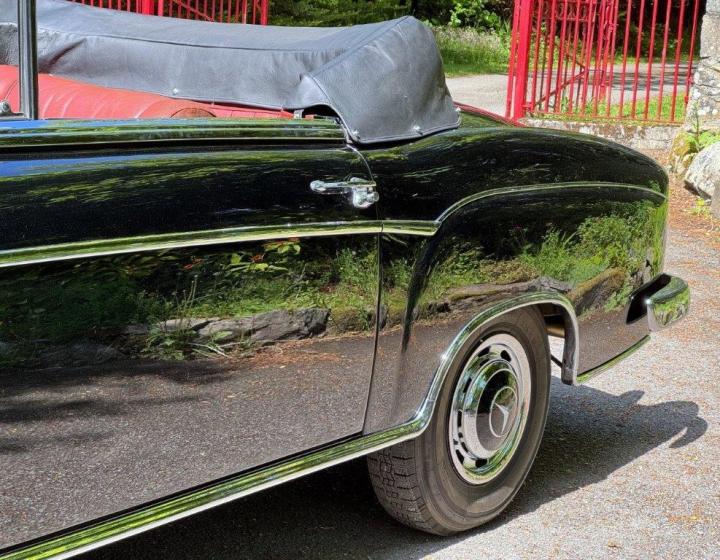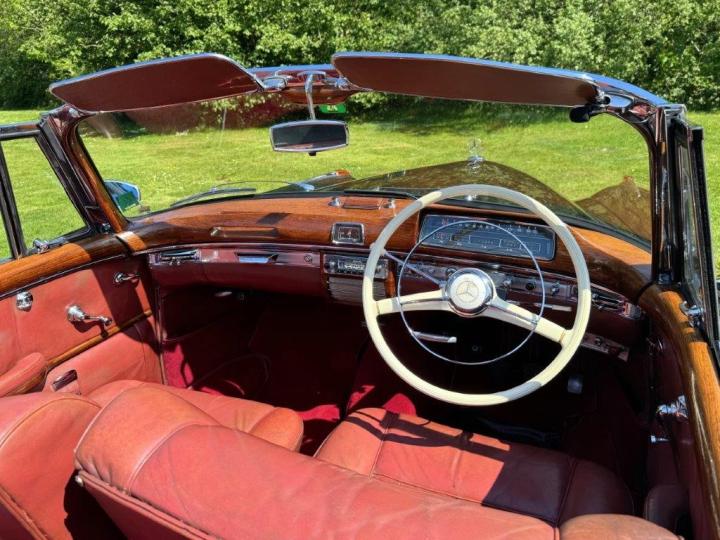 Believed to be 1 of just 20 built in RHD, with less than half of those remaining. The car is in gorgeous condition, having been subjected to a major body restoration a few years ago to a very high standard, as well as more restoration work, totalling some £175,000 in all! This is all documented with invoices. Also in the file of accompanying paperwork are an owner’s manual as well as an instruction manual in a Mercedes pouch. There is an original buff logbook, a continuation green logbook, photos of the restoration and various other documents. The paintwork is like glass and just fabulous! Chrome work is superb, and the whole car is beautiful, correct, and retaining original, mellowed red leather interior. The underside is as impressive as the rest of the car. Runs nicely and drives delightfully. Offered prepared, serviced & newly MoT tested.
