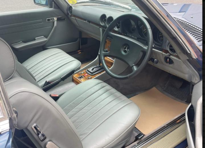 Mexican Hat alloys, recent new tyres, and major service, perfect Bulkhead, unmarked paint, chrome and glass. Hard and soft tops in perfect condition, 51000 miles only with full documented (Lancaster) Mercedes History up to 40000 miles, and specialist there after, three previous owners and first owner 25 years. Driving faultlessly and ULEZ exempt,