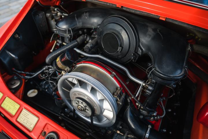Cette déclinaison racée devait initialement être produite à 500 exemplaires pour l'homologation en Groupe IV, mais face à la demande, une deuxième série de 536 exemplaires fut produite, permettant cette fois-ci de l'homologuer en Groupe III. Finalement, une troisième série comprenant 554 exemplaires vit le jour et la 2.7L RS fut au total produite à 1 590 exemplaires répartis sur les trois séries. Les 500 premiers exemplaires, les plus recherchés et désirables, sont équipés d'une caisse légère sans blaxon, et sont ainsi plus légers de 15 kg. C'est le cas de cet exemplaire en Orange Tangerine 018, qui se trouve aujourd'hui dans un bel état de présentation.