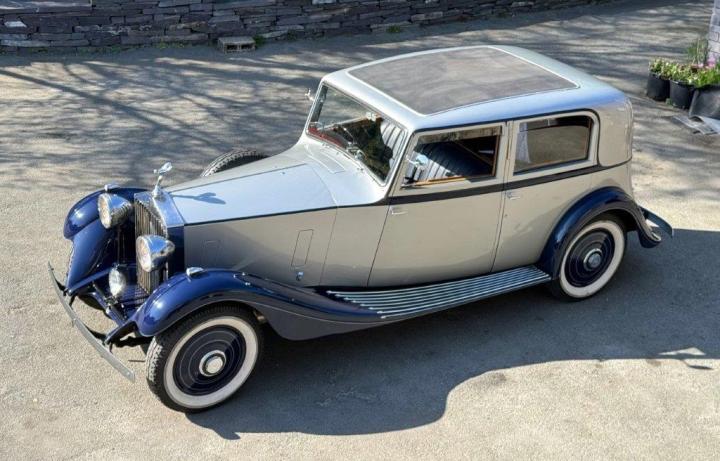 A smart, clean and handsome example, very nicely finished in silver, with wings and waistline moulding in a lovely shade of blue. The interior consists of excellent leather to the front, cloth to the rear & the headlining all in deep blue, with light blue carpets & particularly attractive wood veneers – all work together to create a very unusual and pretty combination. All in fresh, smart condition & to a high quality. Appealing features include ‘trouser crease’ wings, an original Philco ‘Transitone’ radio control on the dashboard, flashing indicators incorporated into the existing sidelights and taillights, as well as trafficators worked from a different switch. Mechanically very good, running and driving nicely, clutch just overhauled and various other preparation works carried out. Offered newly MoT tested.