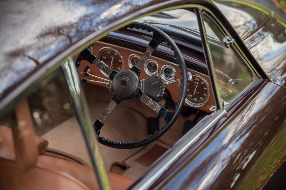 The magnificent six-cylinder T26 engine was given three inverted Solex carburetors but otherwise left alone, as it was already one of the most powerful and strongest passenger car engines in the world. Power was up by 20 horsepower to 210 at 4,500 rpm. On these gratifying underpinnings, a slinky factory body was mounted to a design by Carlo Delaisse, who can be seen as a French Giovanni Michelotti.