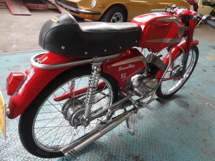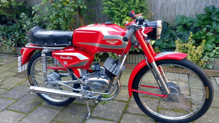 Zeer mooie en perfect rijdende 50CC Testi Grand Prix uit 1964. Een volledig originele en perfect gerestaureerde klassieke brommer met NL kenteken. Grote keus in motor- en bromfietsen in de Stolze Collectie!