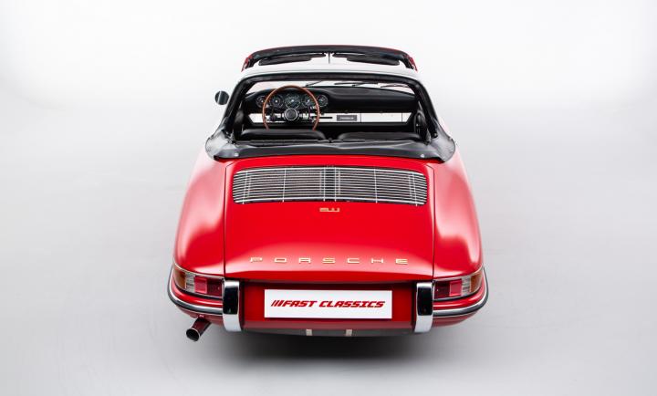 Finished in an exquisite shade of Polo Red, significantly it’s original colour from factory, this soft window Targa is as good as it gets. The Red paintwork catches the time period perfectly and as you’d expect from a recent ground up nut and bolt restoration the finish is flawless and machine polished to perfection. With subtle Gold model inscription, all of the trim and chrome work looks fresh and free of marks with the Targa roll hoop resplendent in it’s traditional satin finish. The non-impact bumpers, of which help create the original 911 silhouette, are unmarked and illustrate a truly iconic sports car that spans generations.