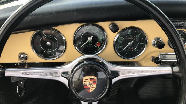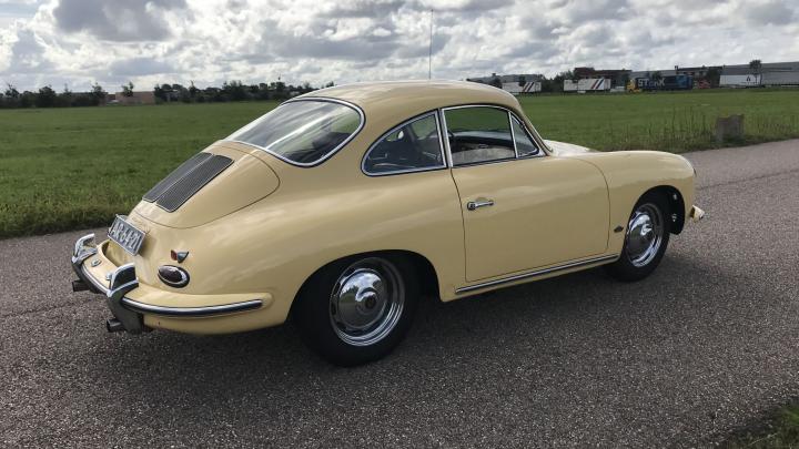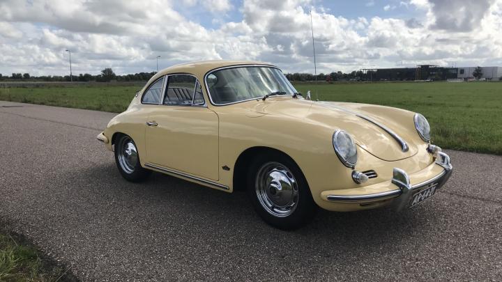 This very beautiful 356B T6 S90 (Super 90) was supplied new in April 1963. The first owner was an American Air Force officer stationed at the Ramstein Airforce Base in Germany. He had his new car delivered to Germany where he used the car until his service time was up. The owner and his car then moved to America, where the owner retained his 356 until his death. Then the car came into the hands of his daughter. She decided to sell the car as she wasn’t really very interested. We bought the car in 2013 and sold it to a Dutch automobile aficionado, who, however, drove the car sporadically. This 356 S90 is still in an excellent and rust-free state. The body was repainted once, in the 1990s, and of course it was repainted in the original colour, Champagne Yellow 6205B. In 1986, the engine was replaced by a KD engine. The code KD stands for Kunden Dienst. Engines with this code are engines that have been overhauled at the Porsche factory and so, this engine is the correct one for this 356B T6. At the request of the owner, the odometer was reset to zero after the new engine had been installed. This has been duly documented and the evidence is part of a large amount of old invoices. The car has since driven some 11,000 mls. only.