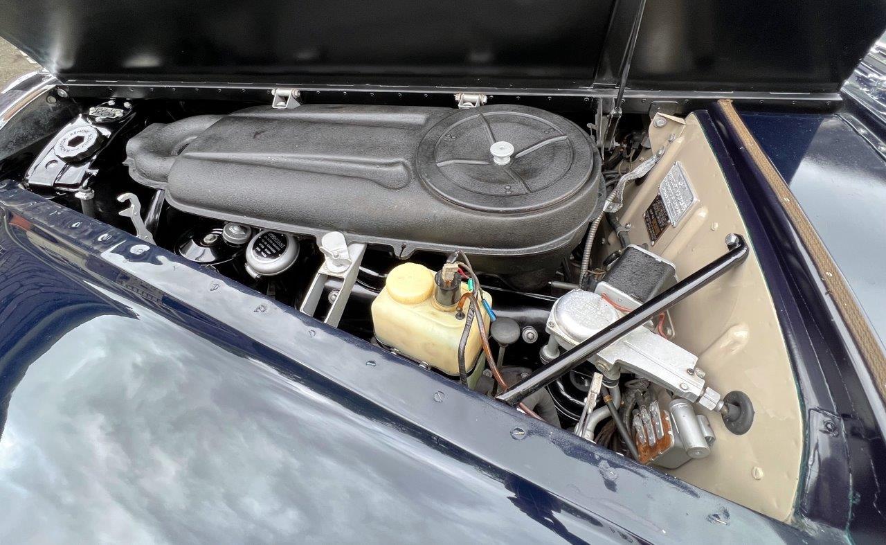 A fabulous example of a desirable design and configuration of car, originally specified to be painted Circassian blue, and now beautifully finished to a very high standard in a gorgeous shade of very dark, inky blue, which may well be the original colour. Fine red pin striping, superb chrome work, and appealing, original blue leather interior, with attractive veneers add to the appealing nature of this car, which combines patina with high quality refurbishment in a way that works particularly effectively. It is very apparent in many ways that the car has undergone significant restoration work in recent times, particularly looking at the underside, which tells a story in itself, being remarkably fresh-looking, clean and well presented, as is the engine bay. Currently fitted with new whitewall crossply tyres, but these can be changed for new blackwall radials if you prefer at no extra cost. Needs to be seen to be fully appreciated. A superb car, offered fully prepared, serviced, UK registered for the first time in many years after time overseas, and newly MoT tested.