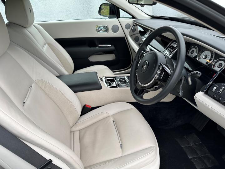Optional equipment specified includes tyre pressure display, comfort access, reversing camera and top view, ambient interior light, high-beam assistant, lane departure warning, side view camera, stolen vehicle tracking, navigation system professional, head up display, fixed glass roof, 21 inch seven spoke fully polished wheels, USB and Bluetooth with assist and Rolls-Royce monograms to all headrests.